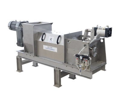 10、避免了帶式壓榨機(jī)為防止物料堵塞濾帶而不斷用水噴沖的弊端,節(jié)約了水資源。