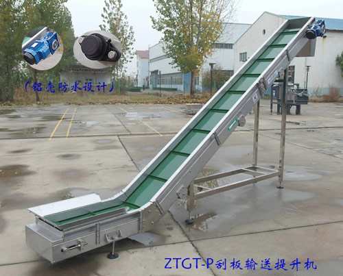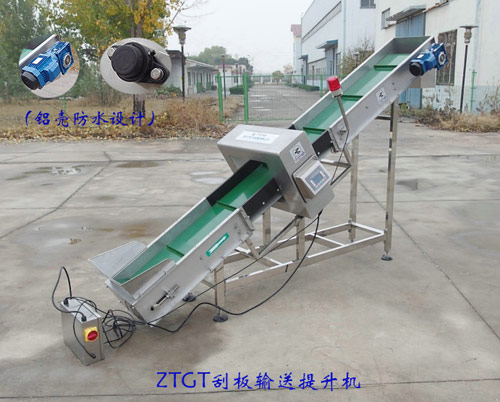 1、該設(shè)備網(wǎng)帶既可以是不銹鋼鏈板帶刮板結(jié)構(gòu)的模塊所組成,也可以是工程級(jí)、食品級(jí)普通皮帶或者帶裙邊的皮帶。根據(jù)物料的不同來(lái)選擇不同的皮帶;